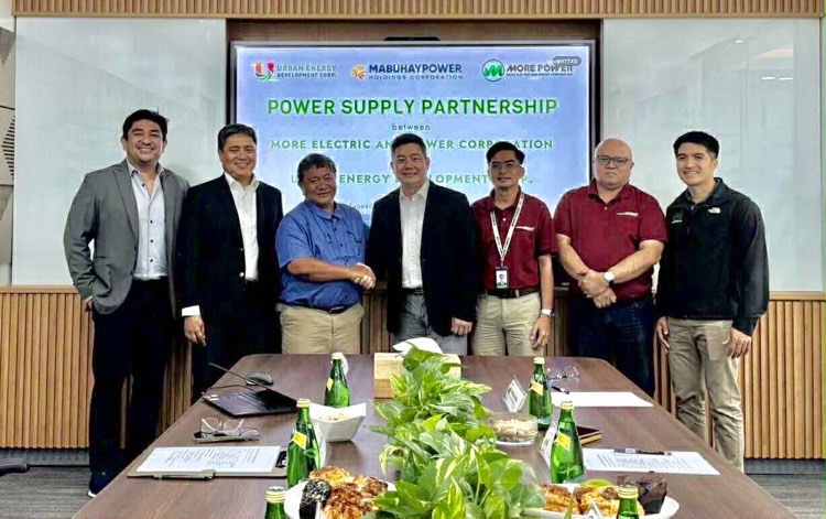 CLEAN ENERGY PARTNERSHIP. MORE Power President/CEO Roel Z. Castro (3rd from left) and MabuhayPower Holdings Corp. Chairman Sherwin Go Hing (4th from left) formalize the 6.6 MW Solar Power Supply Agreement on July 1, 2025. Also in the photo (from left to right) are MabuhayPower Chief Operations Officer Carlo Jose Morales, Urban Energy Development Corporation …